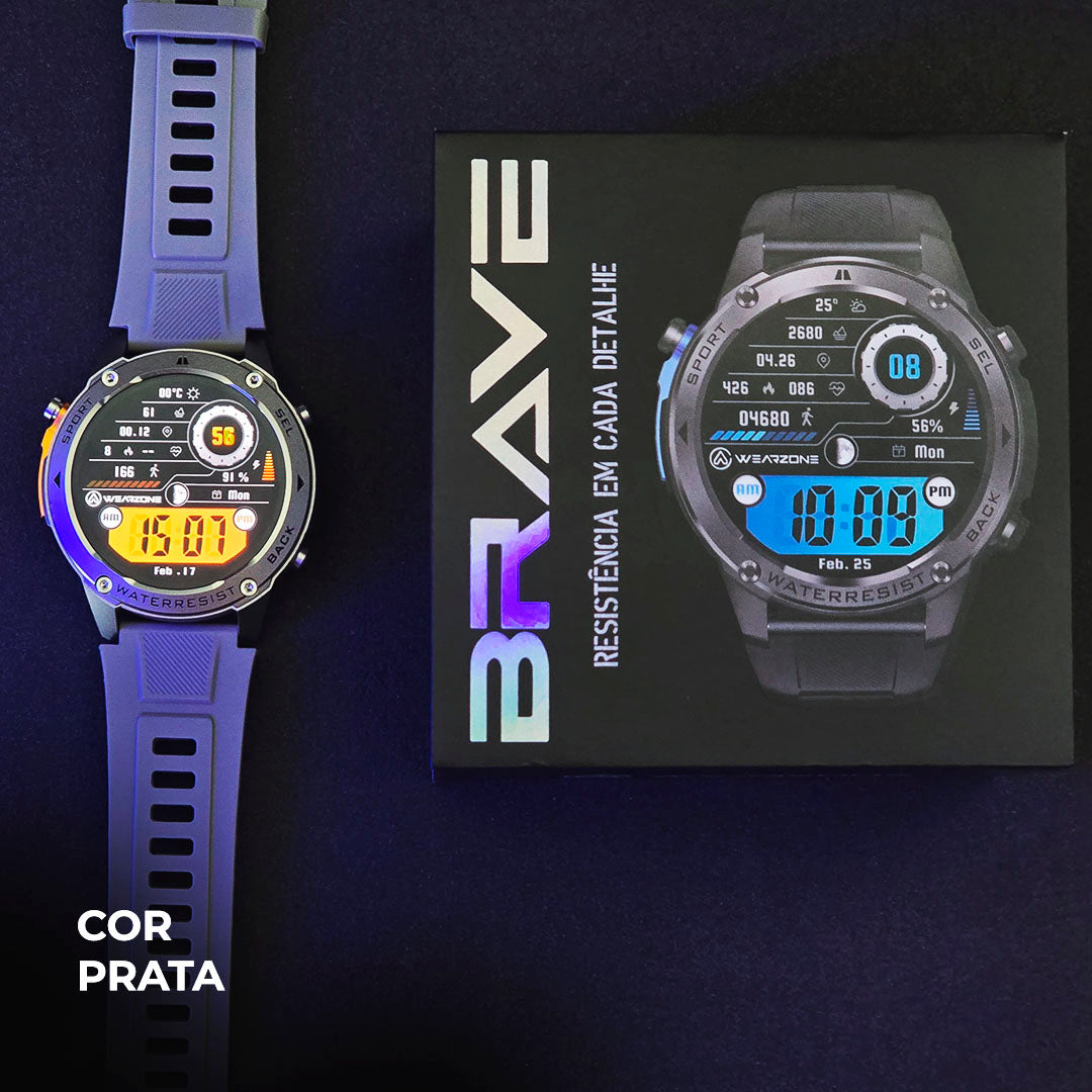 Apresentamos o WEARZONE BRAVE. Desenvolvido para quem busca força, robustez e desempenho excepcionais, este smartwatch combina características de nível militar com a mais alta tecnologia para suportar as condições mais extremas.